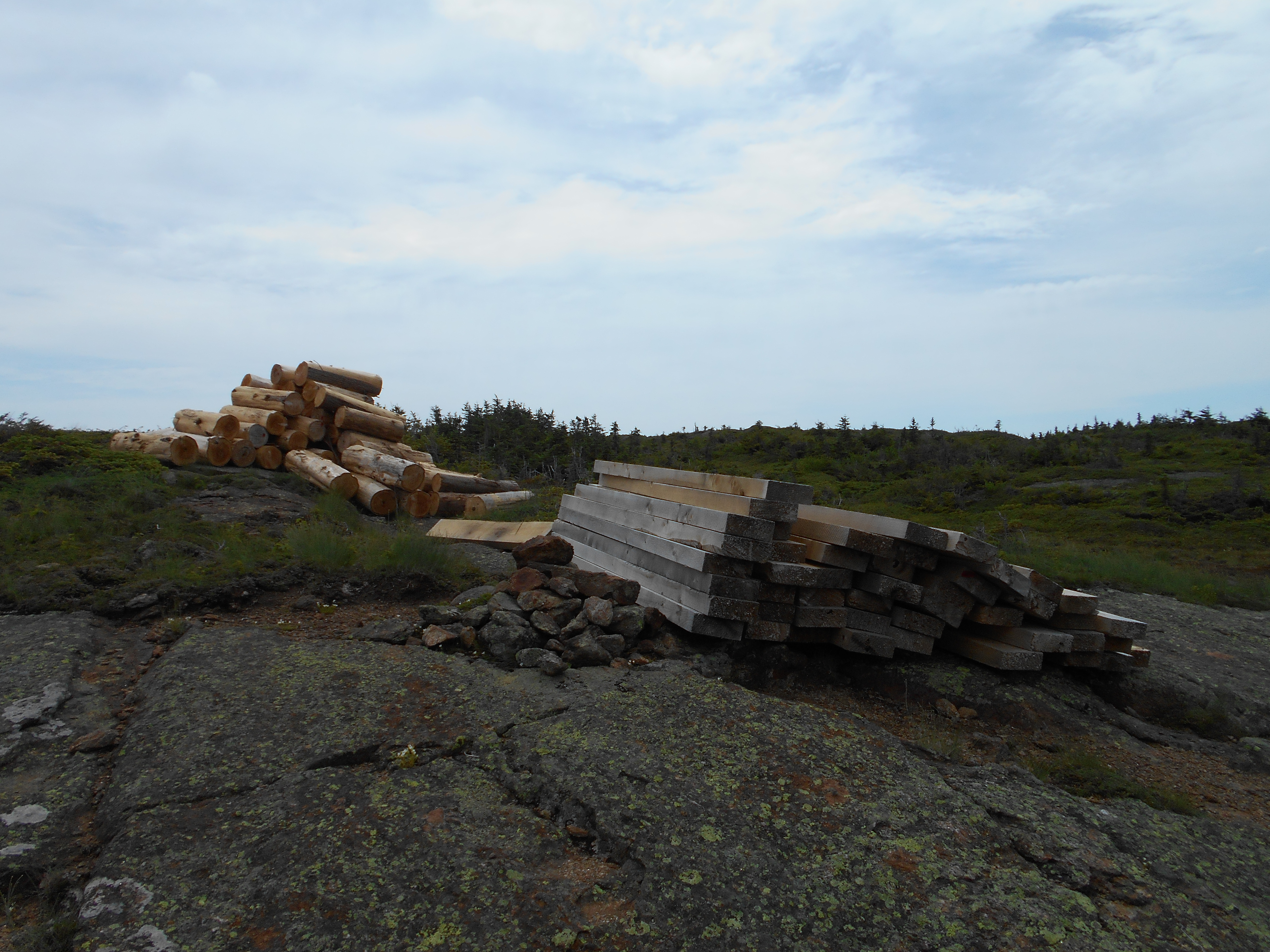 day started out rainy. walked to the general store for breakfast at 6am then back at the hostel for a 7am shuttle to the road. just a very light rain in the morning so good hiking w/o raingear. hike up old blue a little harder and longer than expected, with no views due to fog. other than typical maine rocks, roots and bogs, hike was uneventful until late afternoon. kept hearing thunder but so far only a few drops. also ran into a trail crew working on new steps and I thaked them for their work...I realy think hiking the trail is MUCH easier than building it...so we owe trailcrews a lot! now just relaxing before cooking dinner.