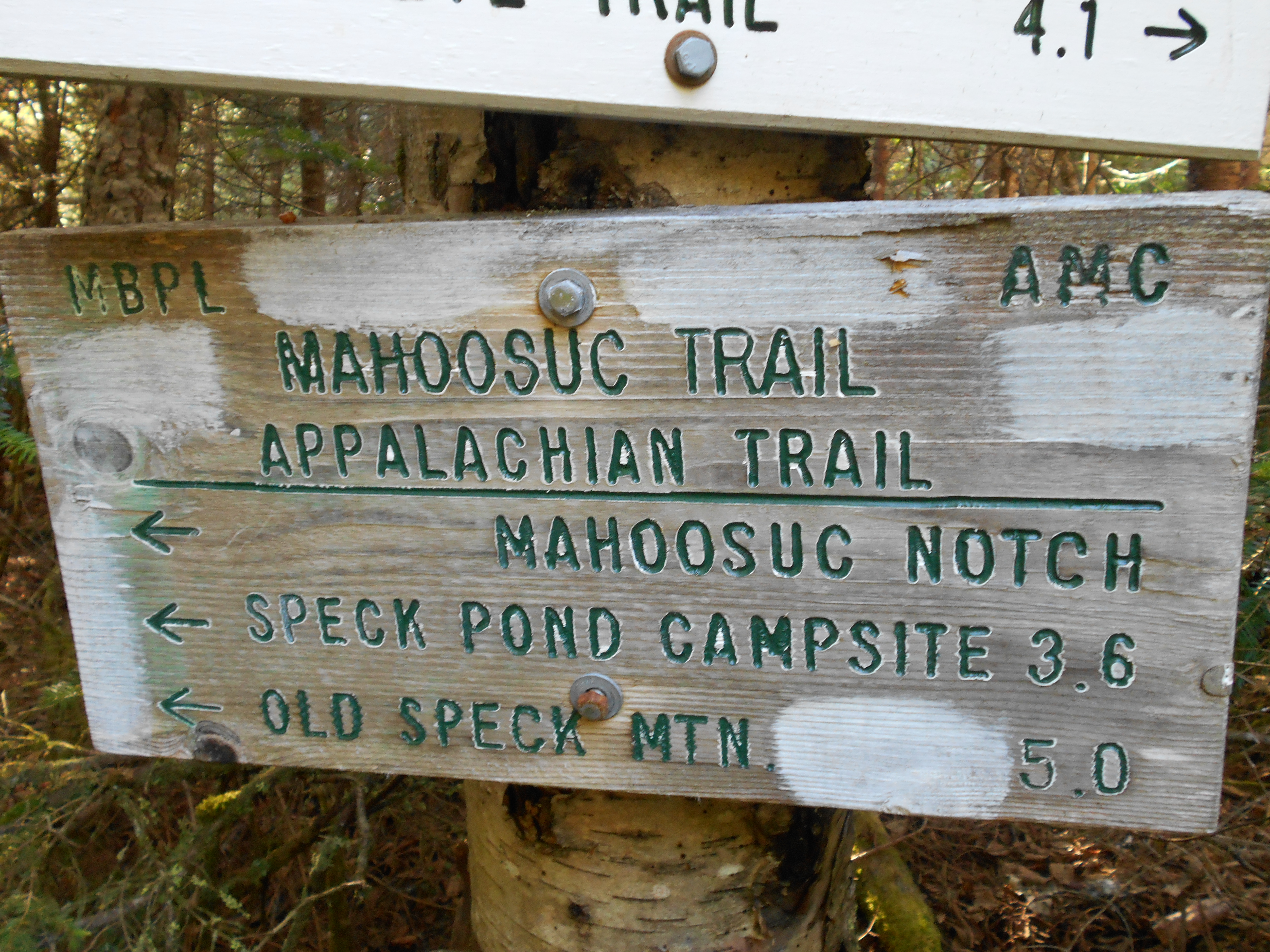 Speck Pond Trail, +AMC Speck Pond Shelter and Campsite (3,500')?last water for the next 3.5 miles north......5.2mS; 6.9mN