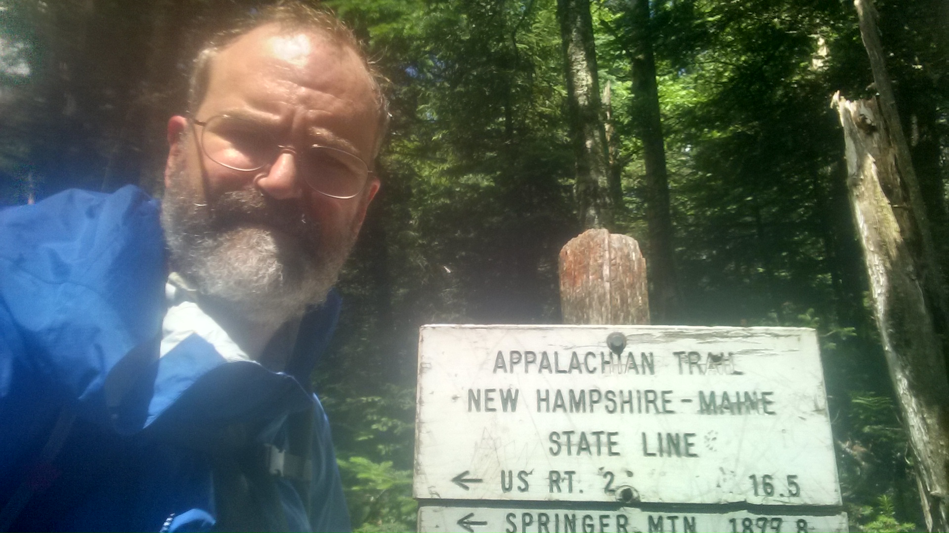 hike this morning was hard up baldplate west and east but great views. hike got much easier after that and I was at the stream befor I knew it. took a quick bath then on the to road crossing (east b hill rd). hitched in (first truck stopped) and I was in town before I knew it. staying at pine ellis lodge. also had a reunion with 50+ who was here (he came into andover via the 2nd road crossing, I came in the first). so we swapped stories from the trail.